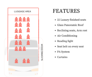 Our luxury Sprinter in Cape Town features 19 reclining leather seats with armrests, creating a spacious and comfortable interior ideal for group travel. The cabin is fully air-conditioned, allowing guests to relax in comfort while exploring Cape Town, the Cape Winelands, the Cape Peninsula, or travelling further afield on longer South African journeys. Additional onboard features such as the PA system and DVD/CD entertainment help enhance the travel experience, especially for private tours, guided excursions, and organised group transfers. For guests seeking luxury group transport in Cape Town, this vehicle offers the perfect balance of executive style and practical comfort.